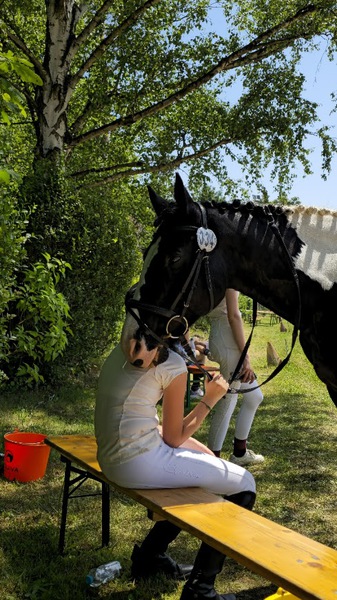 In der 1.Prüfung Dressurreiter WB mit 28 Startern konnte Maya Trgovcic mit Farah eine 7.0 Wertung erziehlen und belegte damit den 4.Platz. Platz 7 belegte Lona Krück mit Heidy (6,8) und 9. Platz konnte Valentina Di Sciacca mit Tally (6,7) erziehlen.